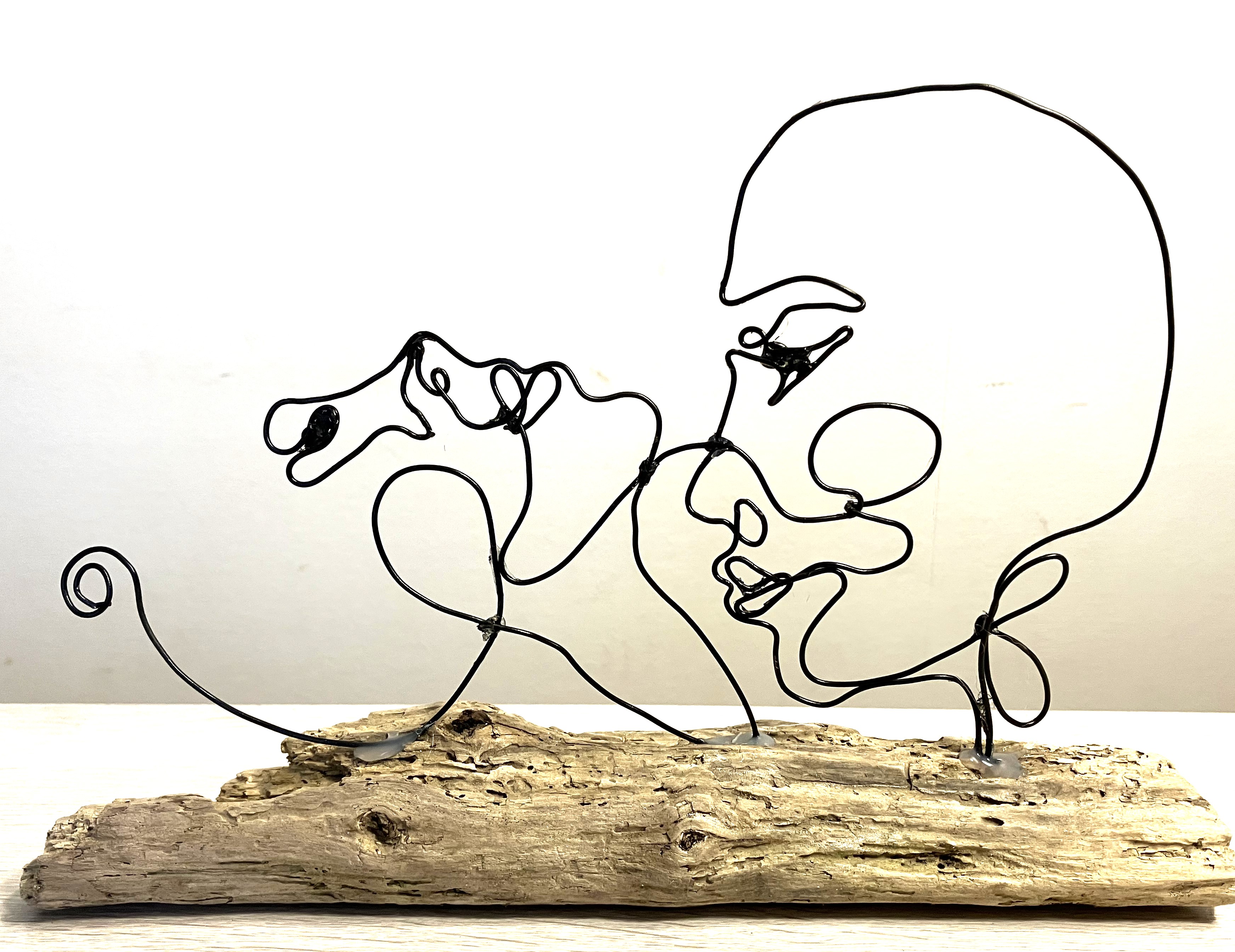 Plongez dans l’intensité de la passion avec cette sculpture artisanale unique, réalisée à la main en fil de fer. Cette œuvre émotive capture un instant de sensualité pure : un homme offrant un baiser sur le cou d’une femme, une scène délicate et pleine de tendresse, qui transpire de sensualité et d’émotion. Les courbes fines et expressives du fil de fer, minutieusement façonné, créent un mouvement fluide et plein de vie, comme si l'instant était figé dans le temps.Montée sur un bout de bois naturel, chaque sculpture est une pièce unique, faite avec soin, où chaque détail reflète un savoir-faire authentique. Cette œuvre ne se contente pas de décorer un espace, elle évoque des émotions fortes et apporte une touche de passion dans n'importe quel intérieur. Sa lumière et son ombre jouent avec les formes, créant une atmosphère sensuelle et intime.Cette sculpture est bien plus qu’un objet décoratif, elle incarne l’amour, la sensualité et la beauté de la complicité entre deux êtres. Parfaite pour offrir à un être cher ou pour ajouter une dimension chaleureuse et envoûtante à votre propre intérieur, elle s'intègre idéalement dans une décoration moderne, romantique ou bohème.